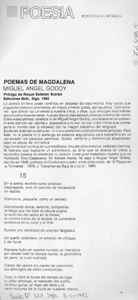 Autores chilenos - Godoy, Miguel Angel - Poemas de Magdalena