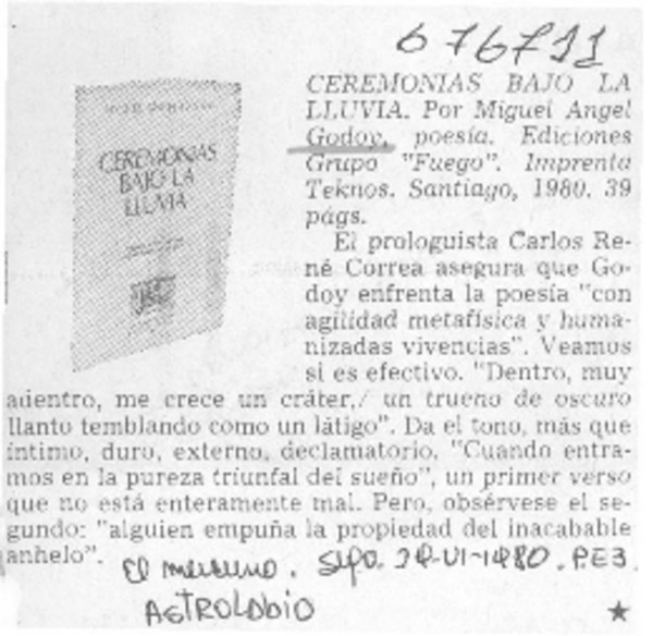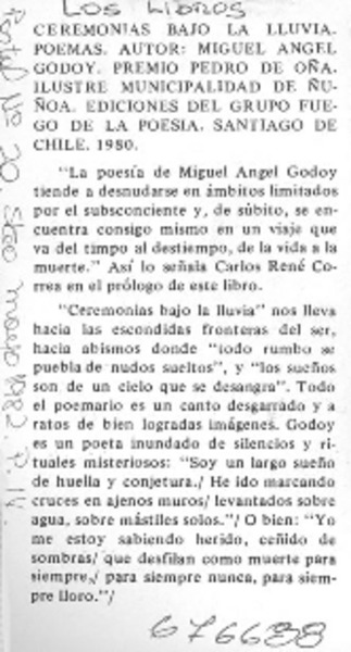 Autores chilenos - Godoy, Miguel Angel - Ceremonias bajo la lluvia