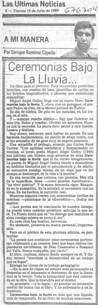 Ceremonias bajo la lluvia -- [artículo] Enrique Ramírez Capello.