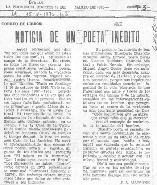 Noticia de un poeta inédito [artículo] J. A. Massone.