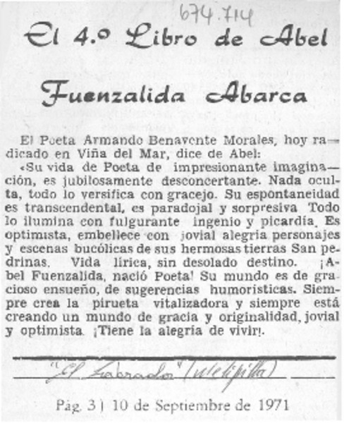 El 4o. libro de Abel Fuenzalida Abarca. [artículo]