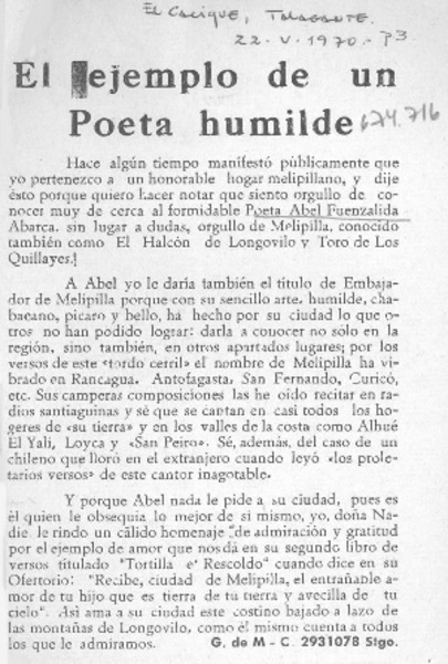 Ejemplo de un poeta humilde [artículo] G. de M.