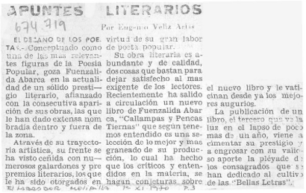 "Apuntes literarios" [artículo] Eugenio Véliz Arias.