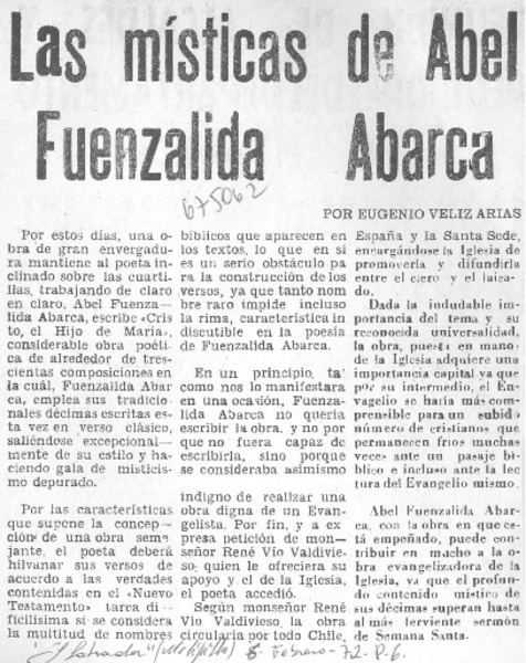 Las místicas de Abel Fuenzalida Abarca [artículo] Eugenio Véliz Arias.