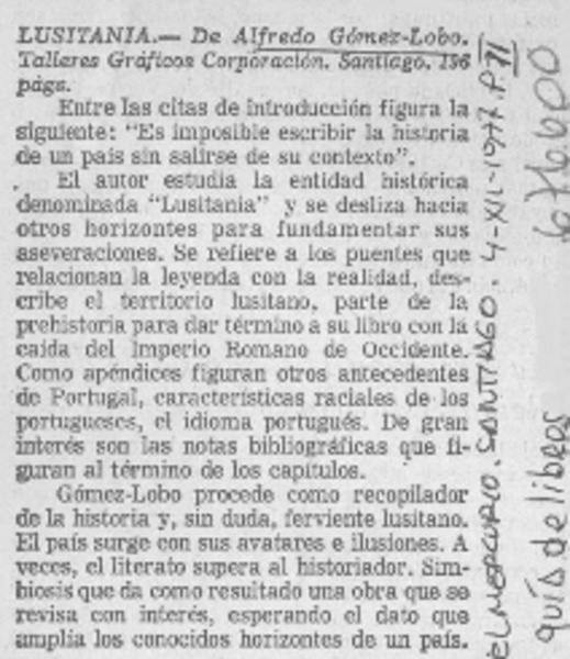 Gómez-Lobo Guevara, Alfredo - Autores chilenos - Lusitania