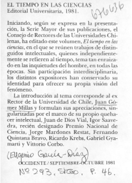 Tiempo en las ciencias - Autores chilenos - Gomez Millas, Juan