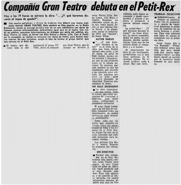 Compañía Gran teatro debuta en el Petit-Rex. [artículo]