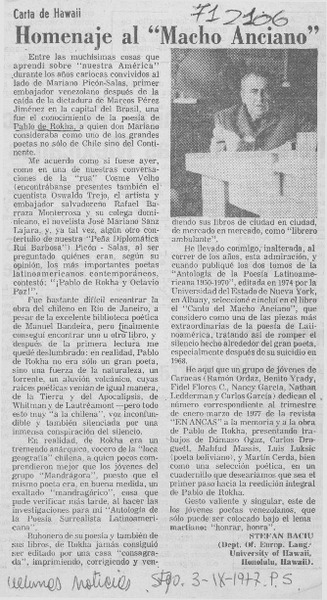 Homenaje al "Macho anciano" [artículo] Stefan Baciu.