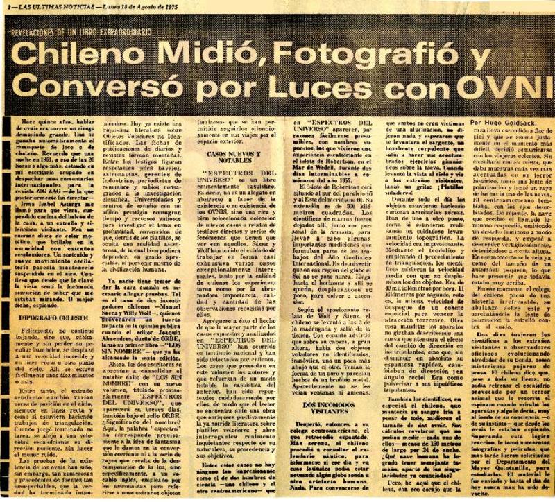 Chileno midió, fotografío y conversó por luces con OVNI. [artículo]