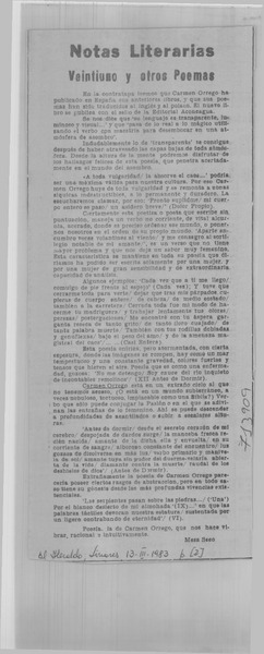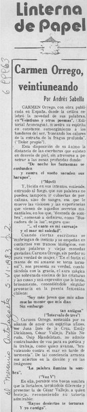 Carmen Orrego, veintiuneando [artículo] Andrés Sabella.