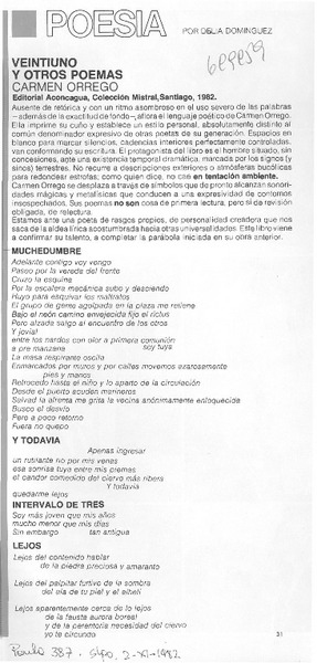 Autoras chilenas - Orrego, Carmen - Veintiuno y otros poemas