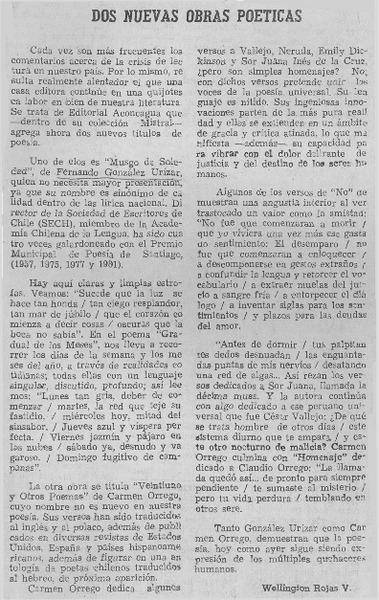 Dos nuevas obras poéticas [artículo] Wellington Rojas Valdebenito.