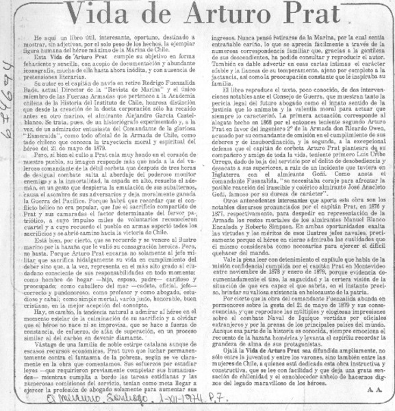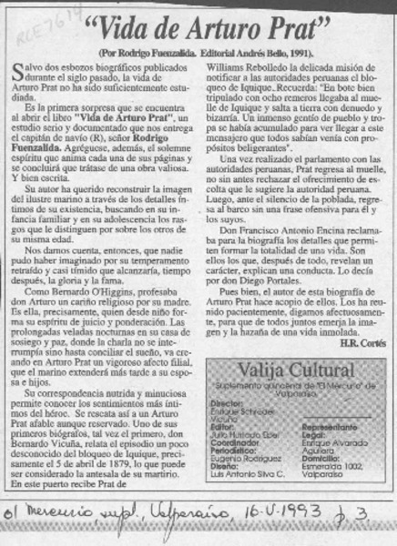 "Vida de Arturo Prat" [artículo] H. R. Cortés.