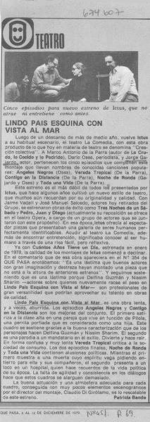 Lindo país esquina con vista al mar [artículo] Patricia Bande.