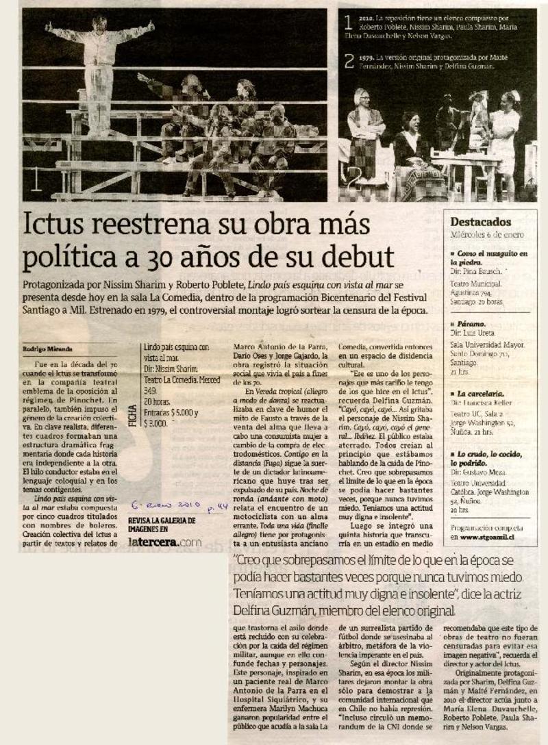 Ictus reestrena su obra más política a 30 años de su debut [artículo] Rodrigo Miranda.