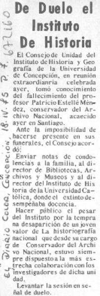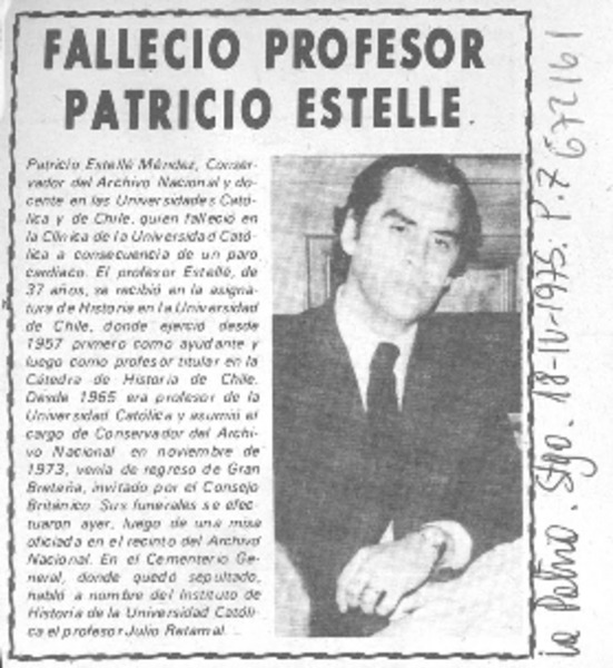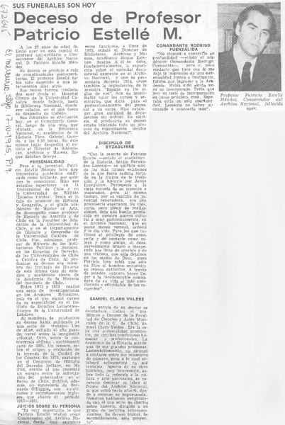 Deceso de Profesor Patricio Estellé M. [artículo].