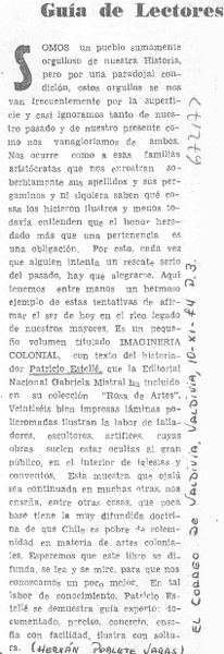 Guía de lectores [artículo] Hernán Poblete Varas.