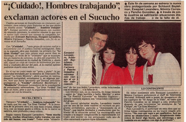 Cuidado!, hombres trabajando", exclaman actores en el sucucho. [artículo]