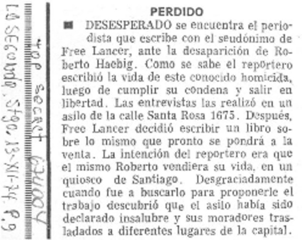 Autores chilenos - Ultimos días de Roberto Haebig - Lancer, Free - entrevista