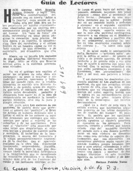 Guía de lectores [artículo] Hernán Poblete Varas.