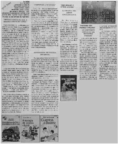 Autores chilenos - Antología de poesía infantil - Cuentos a Beatriz - Medallones de sol y medallones de luna - Romero, María - Cosani, Esther - Alonso, Carmen de - Villalobos R., Sergio - Rosasco, José Luis - Historia del pueblo chileno - Ese verano y otros ayeres