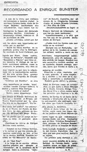 Recordando a Enrique Bunster [artículo] A.P.