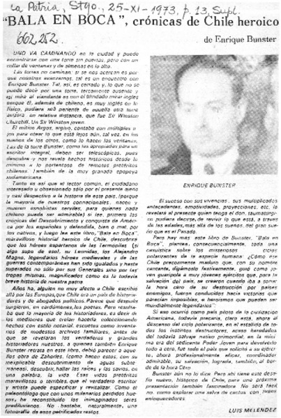 Bala en boca", crónicas de Chile heroico [artículo] Luis Meléndez.