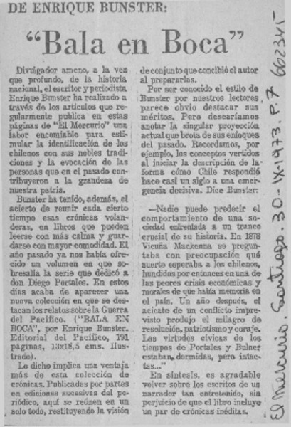 Bunster, Enrique - Autores chilenos - Bala en boca