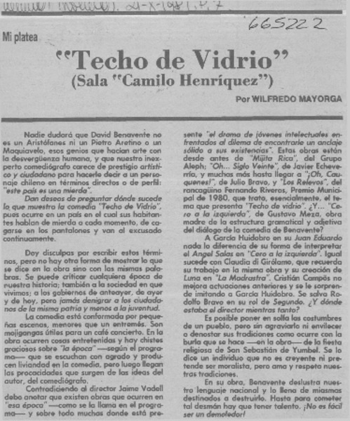 Techo de vidrio" [artículo] Wilfredo Mayorga.