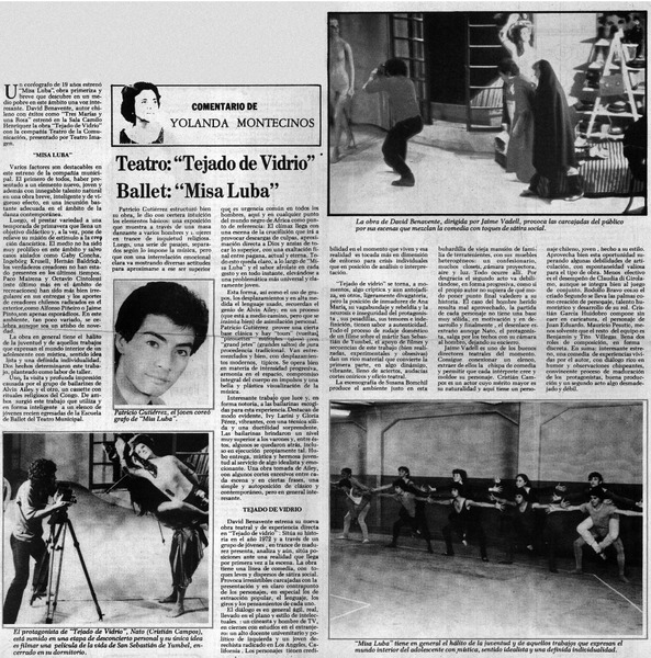 Teatro "Tejado de vidrio" ballete, "Misa Luba" [artículo] Yolanda Montecinos.