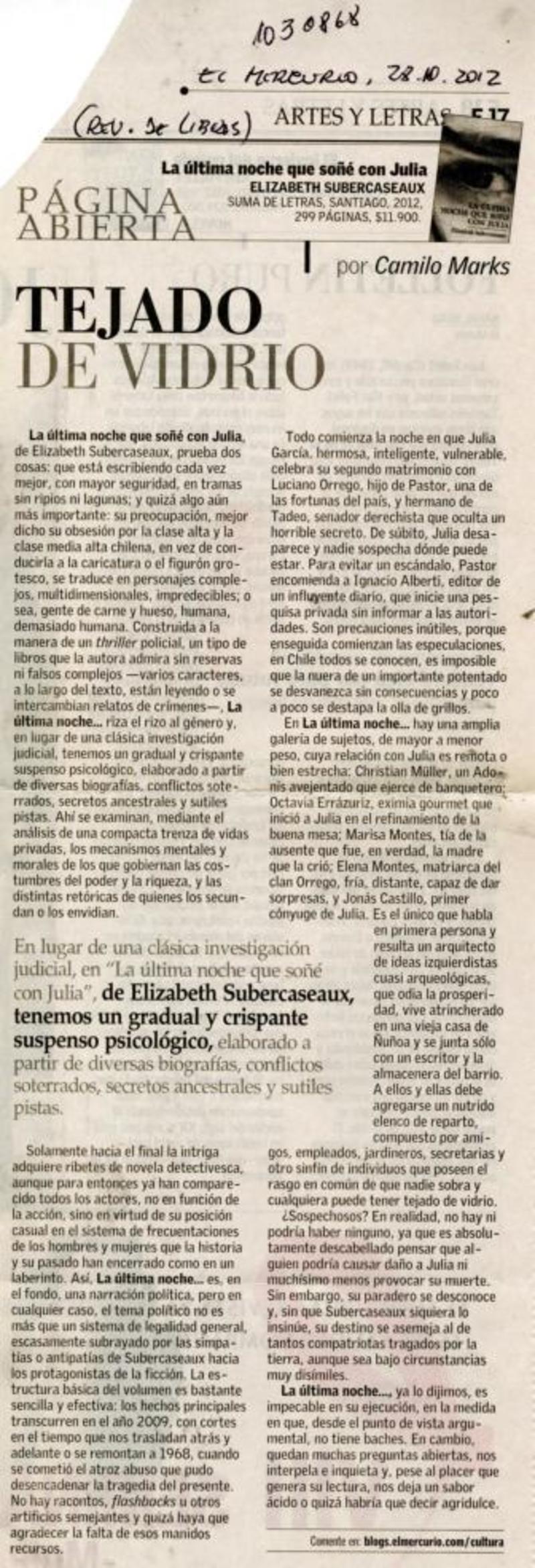 Autoras chilenas - Subercaseaux, Elizabeth - Tejado de vidrio
