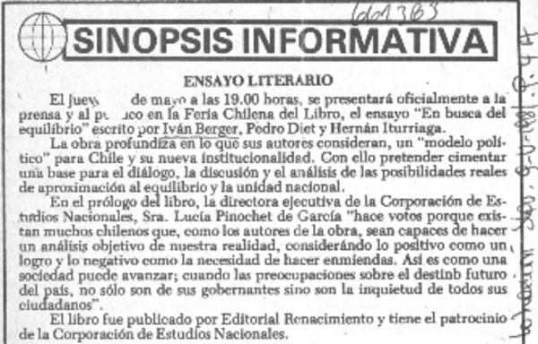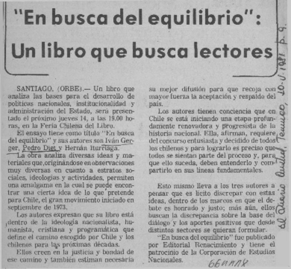 En busca del equilibrio": un libro que busca lectores. [artículo]