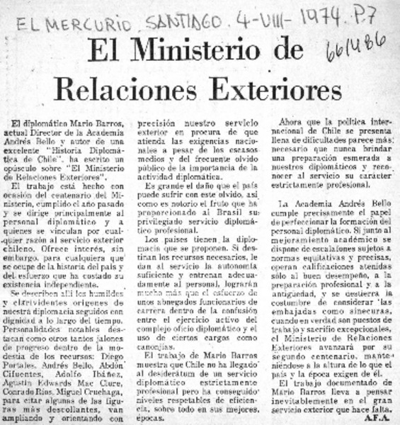 El Ministerio de Relaciones Exteriores [artículo] A. F. A.