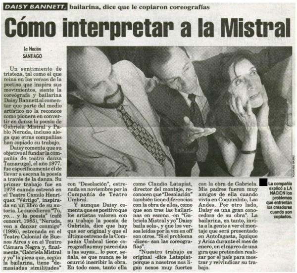 Daisy Bannett, bailarina, dice que le copiaron coreografías, "Cómo interpretar a la Mistral". [artículo]