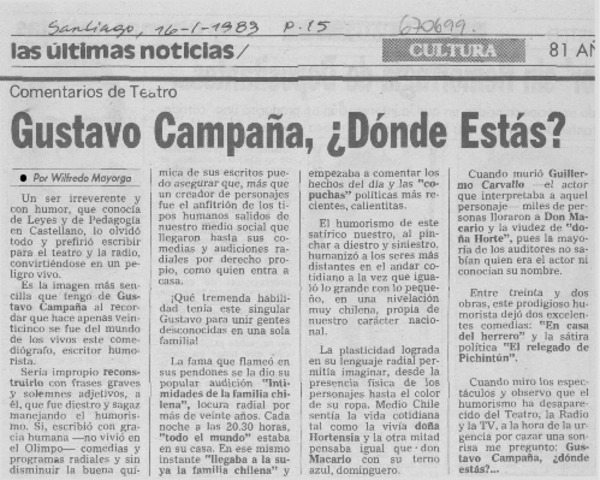 Gustavo Campaña, ¿Dónde estás? [artículo] Wilfredo Mayorga.