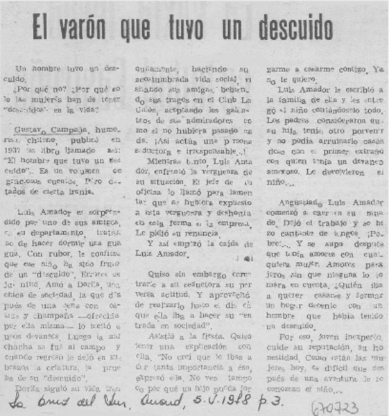 El Varón que tuvo un descuido. [artículo]