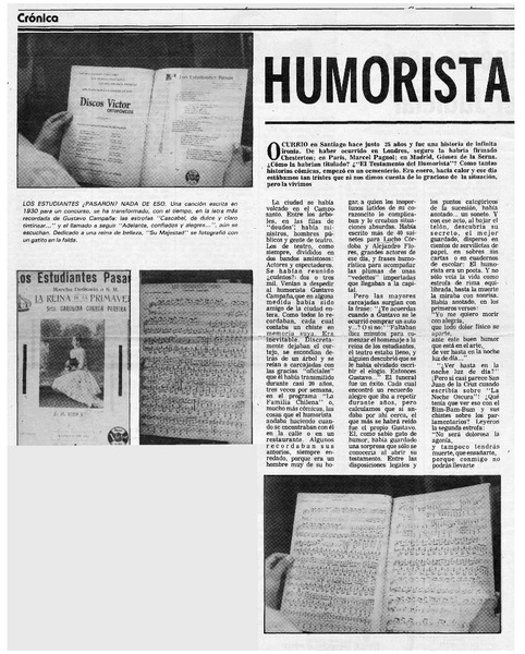 Humorista Gusravo Campaña hizo bromas hasta después de muerto [artículo] Carlos Alberto Cornejo.