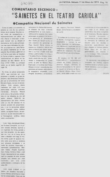 Sainetes en el teatro Cariola [artículo] Dylan.