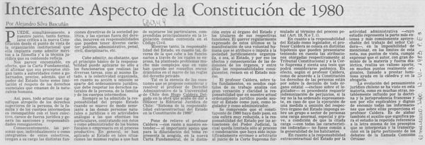 Interesante aspecto de la Constitución de 1980 [artículo] Alejandro Silva Bascuñán.