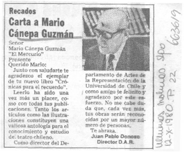Cartas de Mario Cánepa Guzmán [artículo] Juan Pablo Donoso.