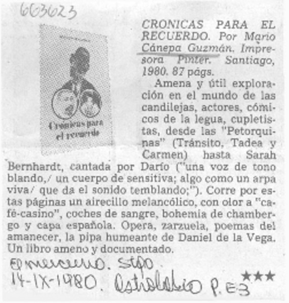 Autores chilenos - Crónicas para el recuerdo - Cánepa Guzmán, Mario