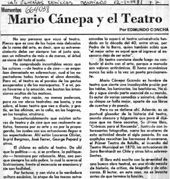 Mario Cánepa y el teatro [artículo] Edmundo Concha.