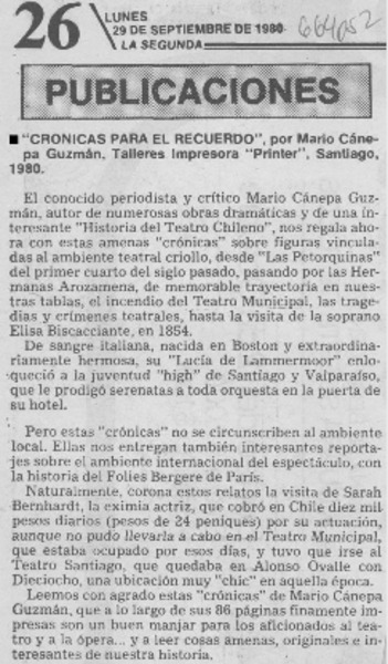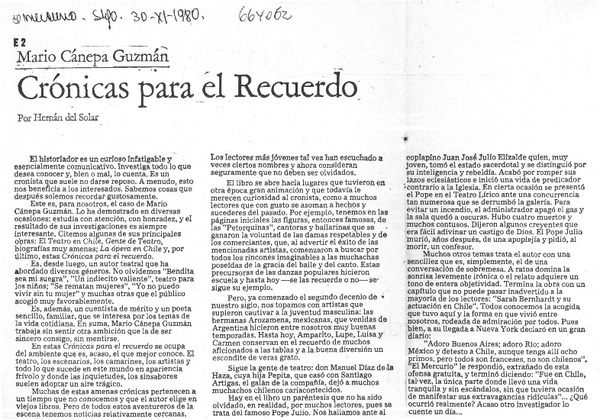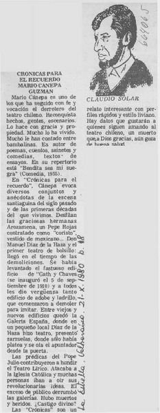 Crónicas para el recuerdo [artículo] Claudio Solar.