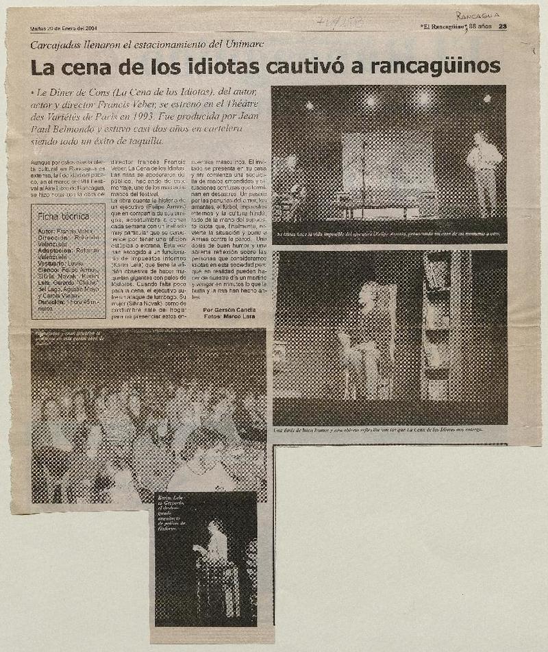 La cena de los idiotas cautivó a rancagüinos [artículo] Gersón Candia.
