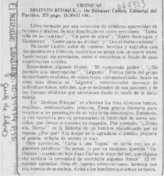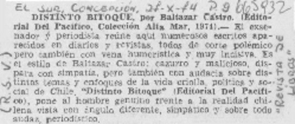 Autores chilenos - Distinto bitoque - Castro, Baltazar