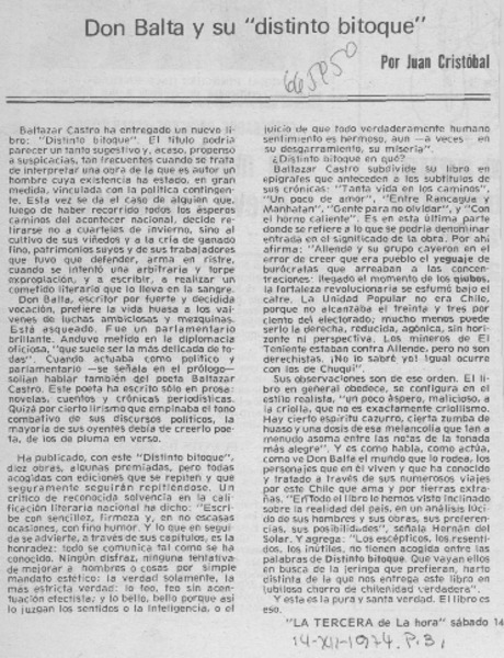Baltazar Castro: distinto bitoque [artículo] Hernán del Solar.