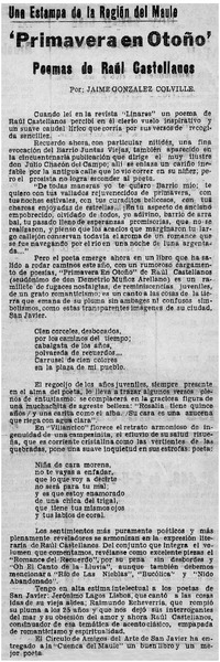 Primavera en otoño - Muñoz Arellano, Demetrio - Navarrete, César - Mi cielo derribado - Canto a Concepción - Orígen griego de los araucanos - Autores chilenos - Pincheira, Dolores