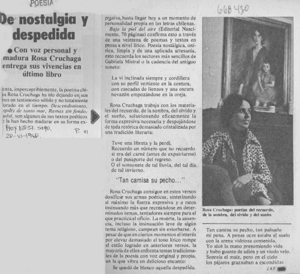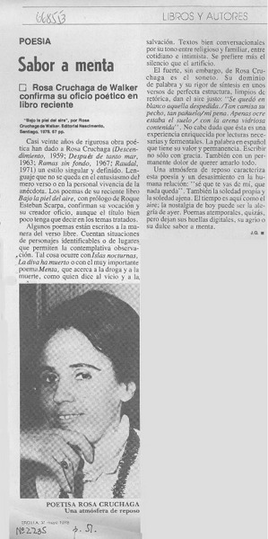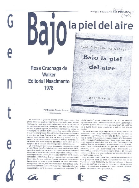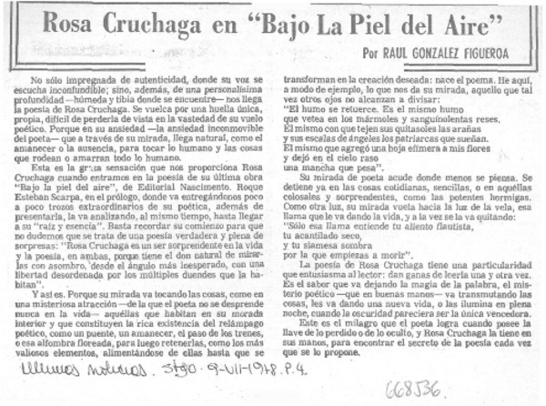 Rosa Cruchaga en "Bajo la piel del aire" [artículo] Raúl González Figueroa.