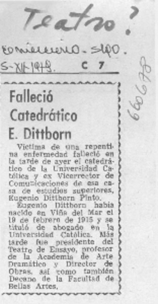 Autores chilenos - Dittborn Pinto, Eugenio - Teatro universitario