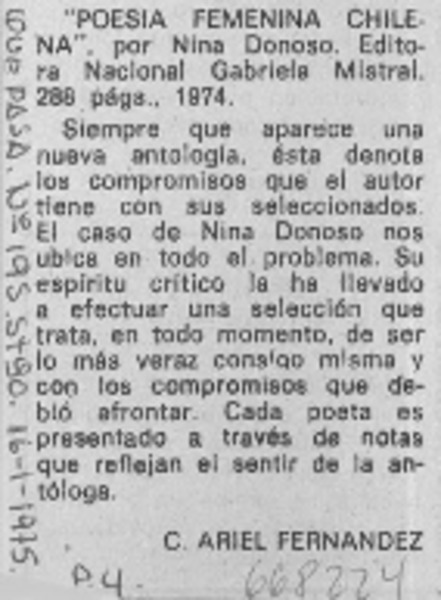 Autoras chilenas - Donoso, Nina - Poesía femenina chilena